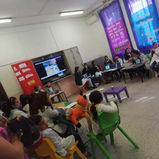 Exposición que abrió las puertas a la comunidad para mostrar cómo los niños van incorporado procedimientos de manejo de la tecnología y cómo aprenden. Todos los presentes participamos en un juego, organizado por la dinamizadora Yéssica Paz, a través de una app online denominada Kahoot.